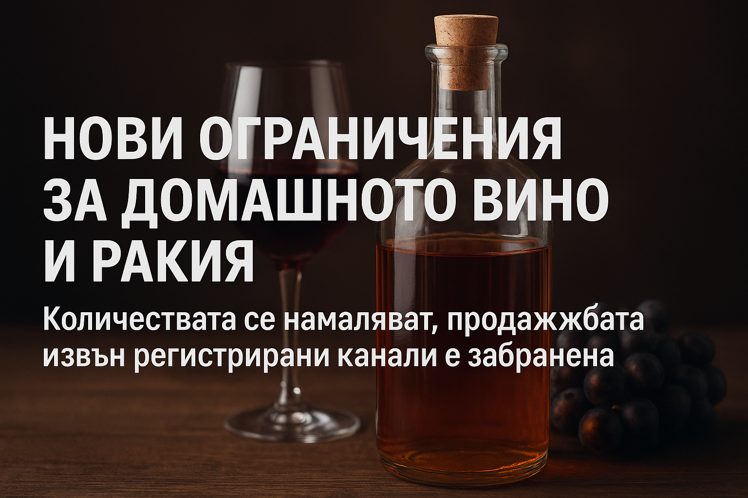 Домашната ракия и вино вече ще се правят в значително по-малки количества, а продажбата им извън регламентираните канали ще бъде строго забранена.